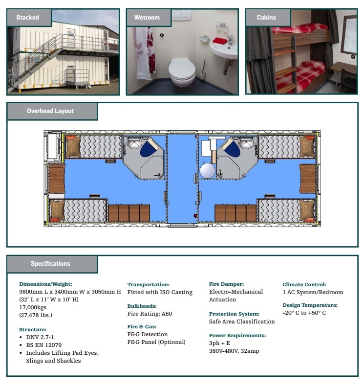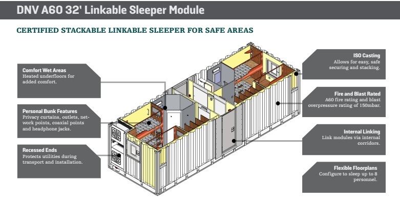 DNV, A60 rated linkable 2/4 man accommodation cabins.