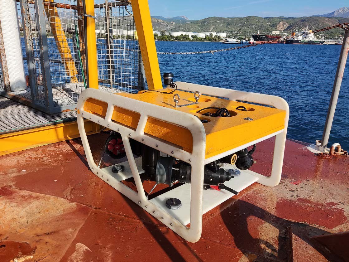 The Ippodamus ROV system is rated to 750m and comes with 2 x HD cameras (1 x front and 1 x rear) and 250m of umbilical.