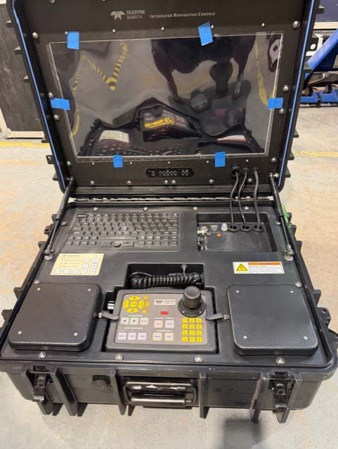 c/w topside controls & power supply, navigation console and 150m tether on hand winch.