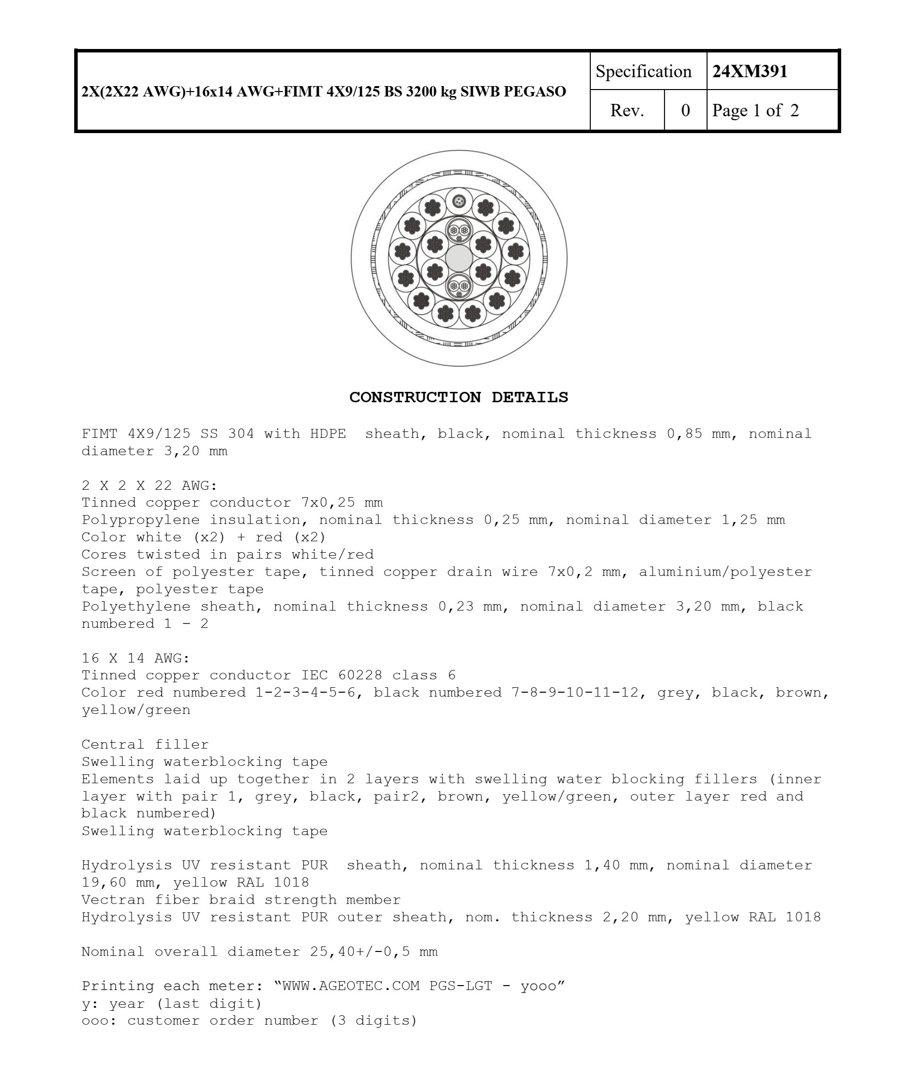 25.40mm O.D, includes 4x Multimode fibres and 18x conductors.