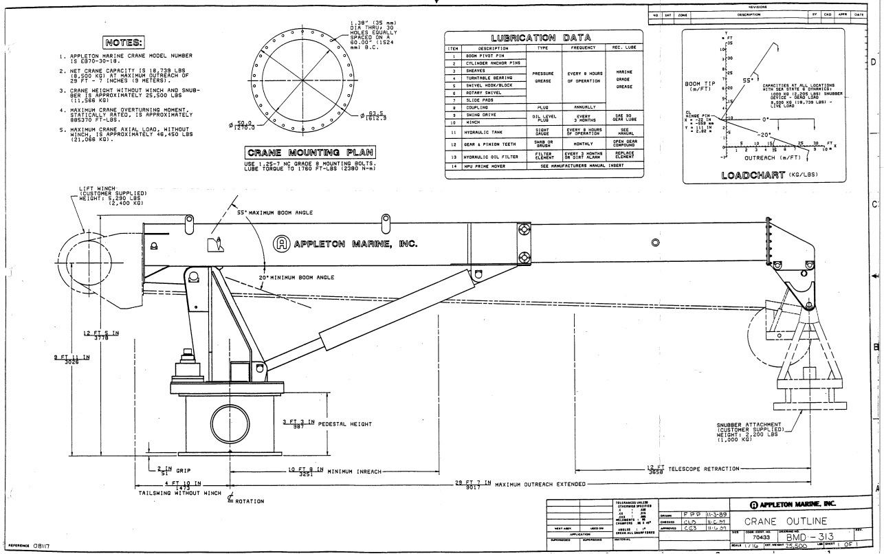 Pedestal mounted telescopic Appleton Marine crane which was refurbished a number of years ago and hasn't been used since.