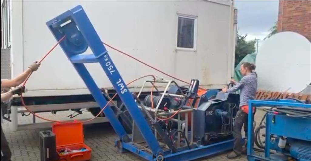Small A-Frame skid with winch, umbilical and slipring, may be suitable for free flying inspection ROV.
