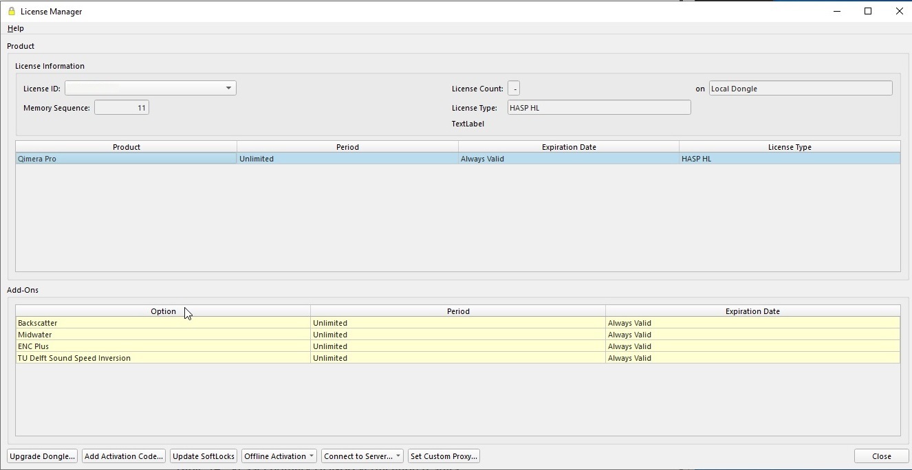 Additional options enabled including backscatter. The support and maintenance has expired